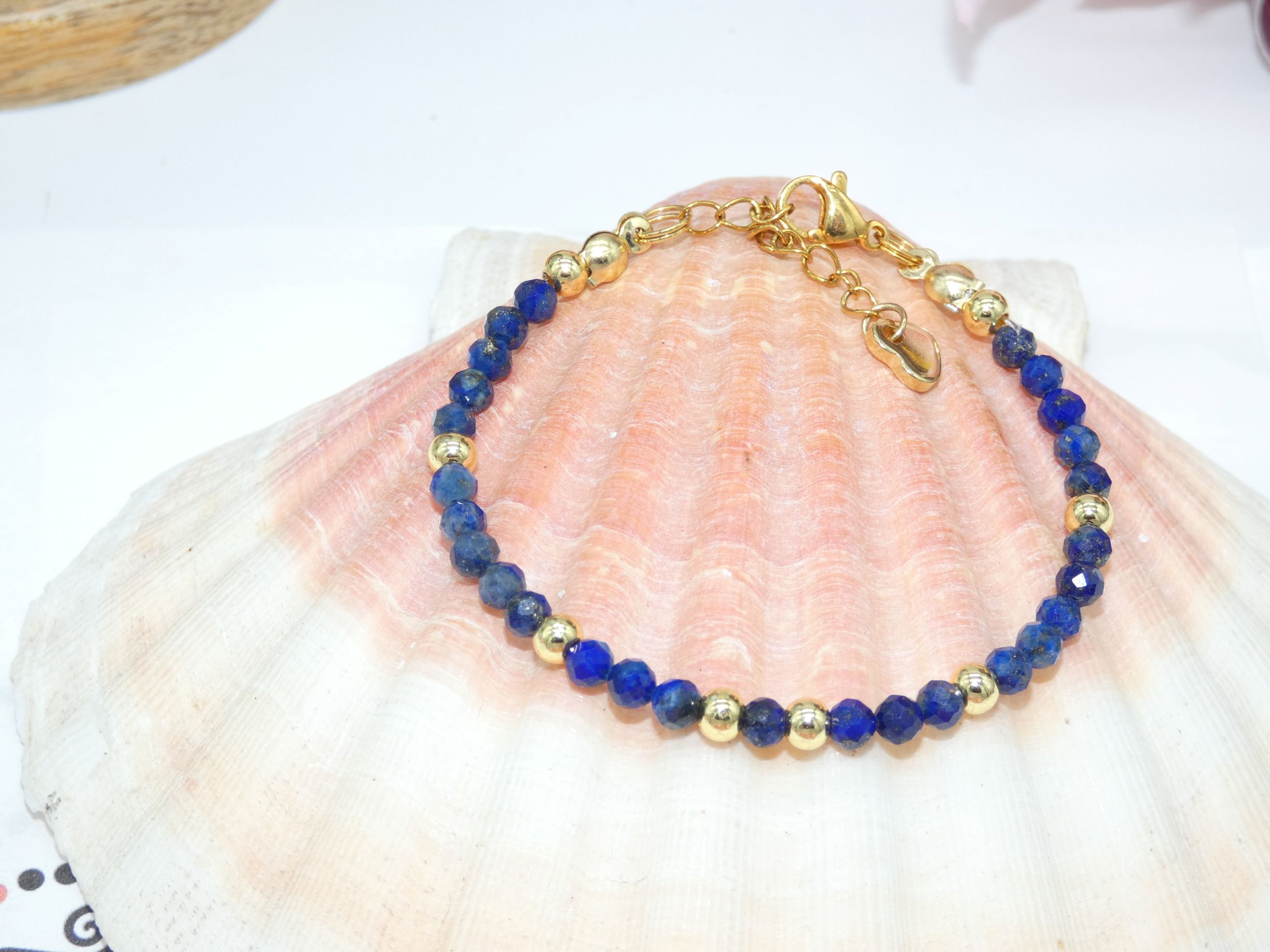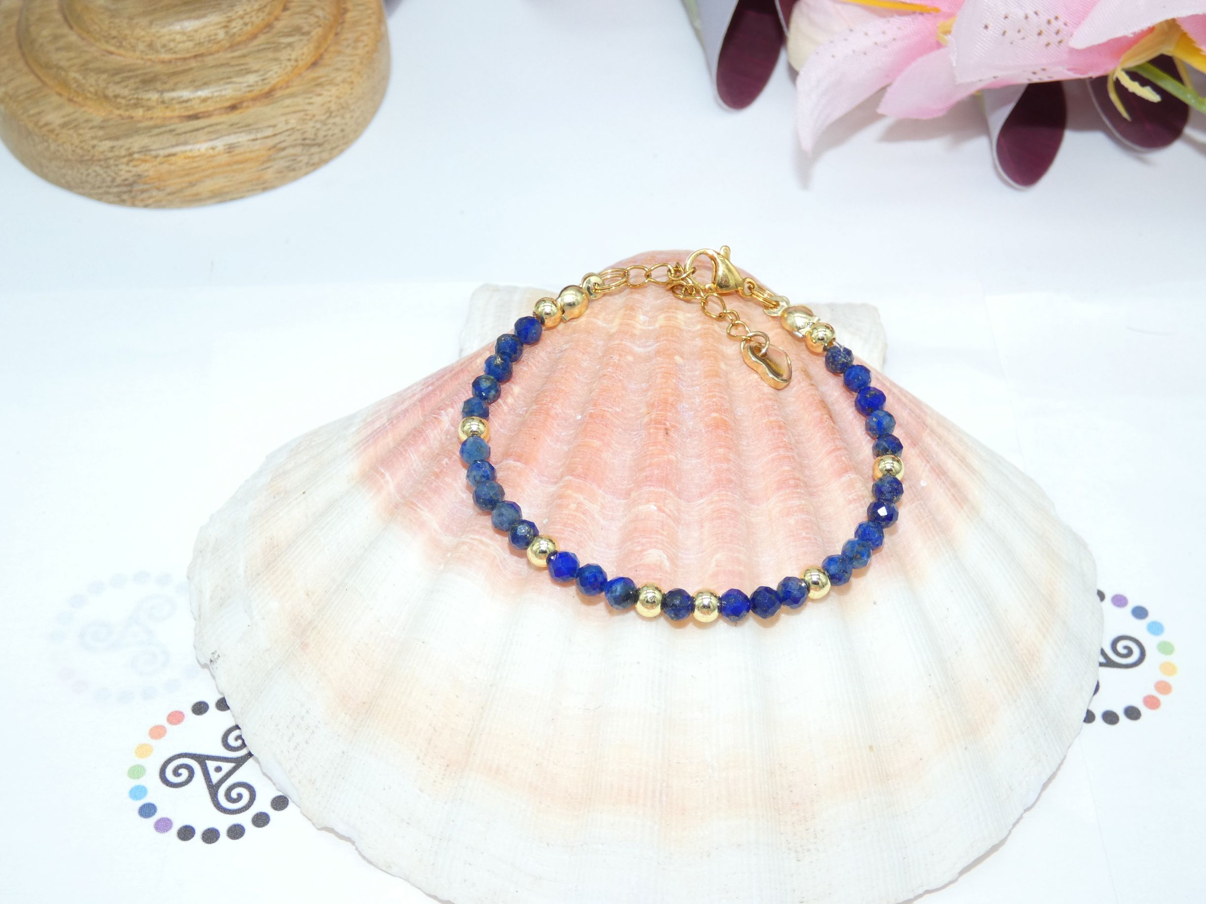 Bracelet 4 mm Lapis-Lazuli doré : la pierre bleue de la créativité